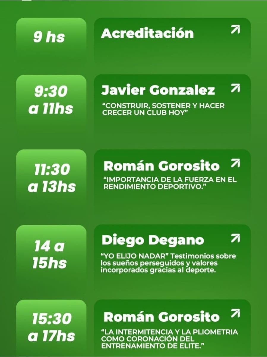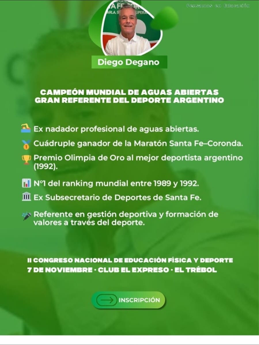 - Diego Degano: El nadador compartirá su experiencia personal bajo la charla “Yo elijo nadar”, ofreciendo valiosos testimonios sobre los sueños perseguidos y los valores que se incorporan a través de la práctica deportiva.