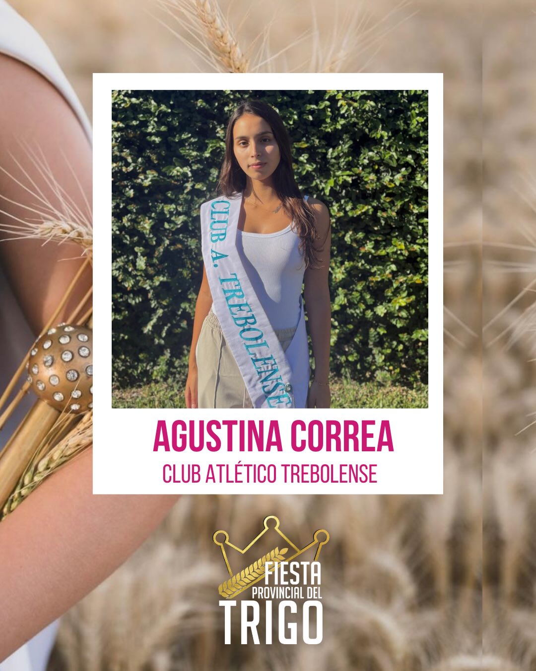 La expectativa crece en torno a la elección de la nueva Reina Provincial del Trigo. Entre las 13 postulantes de diversas localidades, El Trébol cuenta con una representante de lujo: Agustina Correa, enviada por el Club Trebolense.