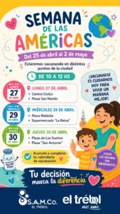 En el marco de la Semana de Vacunación de las Américas, que se extiende del 25 de abril al 2 de mayo, el SAMCo El Trébol y la Municipalidad llevan adelante una campaña conjunta para acercar el vacunatorio a todos los barrios. La iniciativa busca que los vecinos puedan iniciar o completar sus esquemas del Calendario Nacional de forma rápida y gratuita.