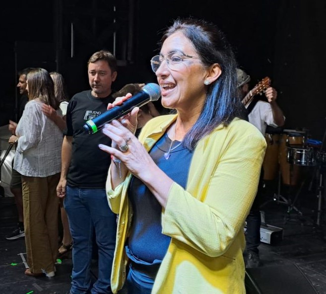 Apoyo a la cultura local: Durante su visita, acompañó la presentación de Positivo Folk, una banda emergente de Gálvez que deleitó al público con su música.